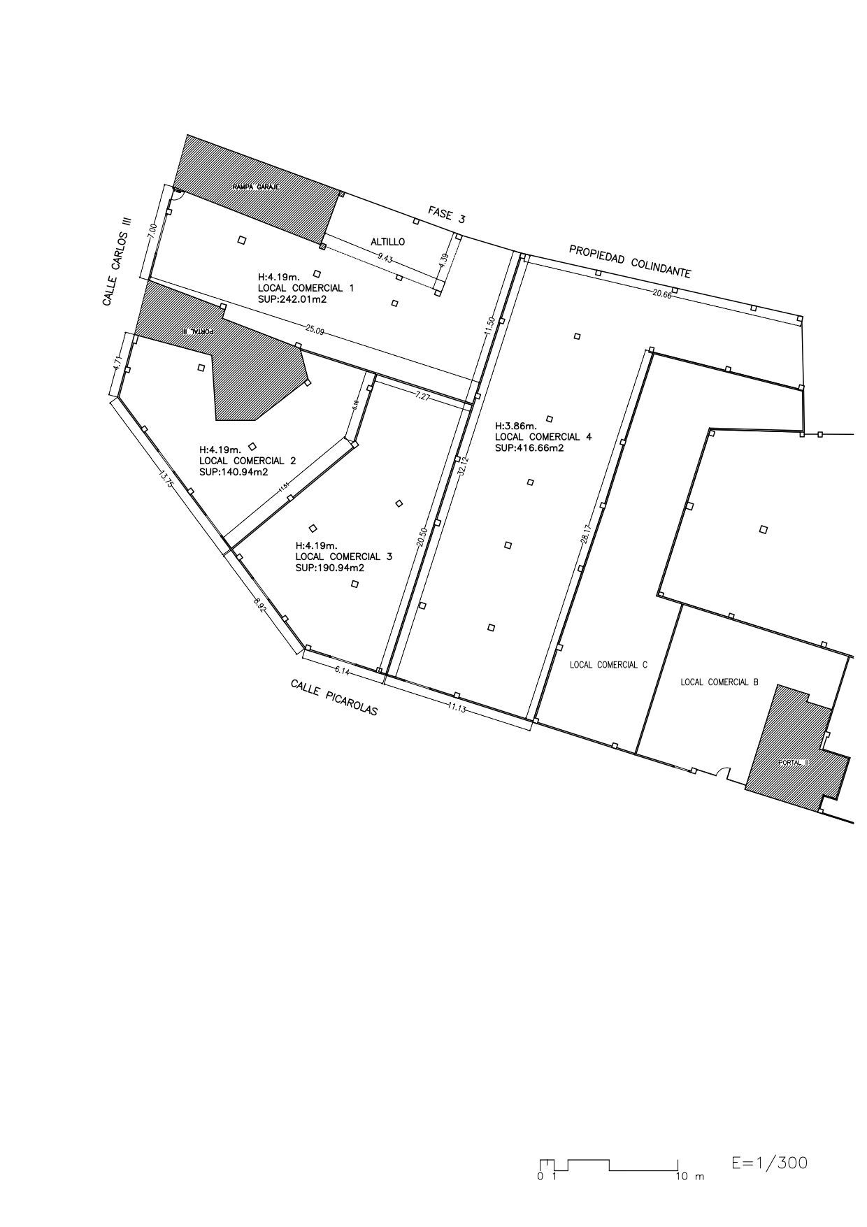 Disponemos de dos locales totalmente diáfanos con una superficie de 1696 y 997 metros cuadrados. Posibilidad de dividirlos como en el ejemplo de división.